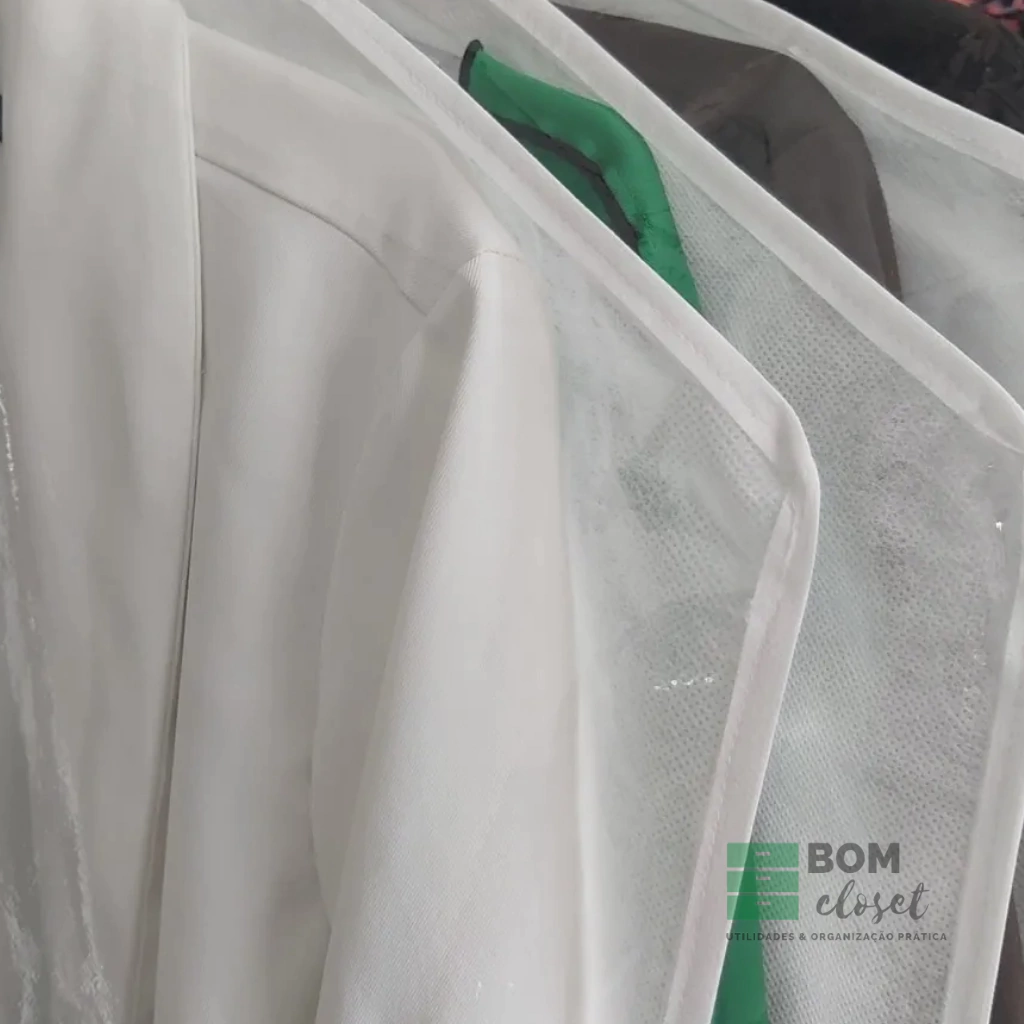 As capas protetoras são excelentes para conservar, organizar e evitar vincos e marcas indesejaveis em ternos, vestidos, casacos e roupas com detalhes delicados como pedrarias e bordados.