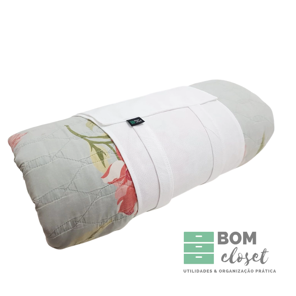 Ideal para facilitar e agilizar o momento de guardar seus edredins e cobertas. Por ter seu fechamento com velcro, basta enrolar e prender!