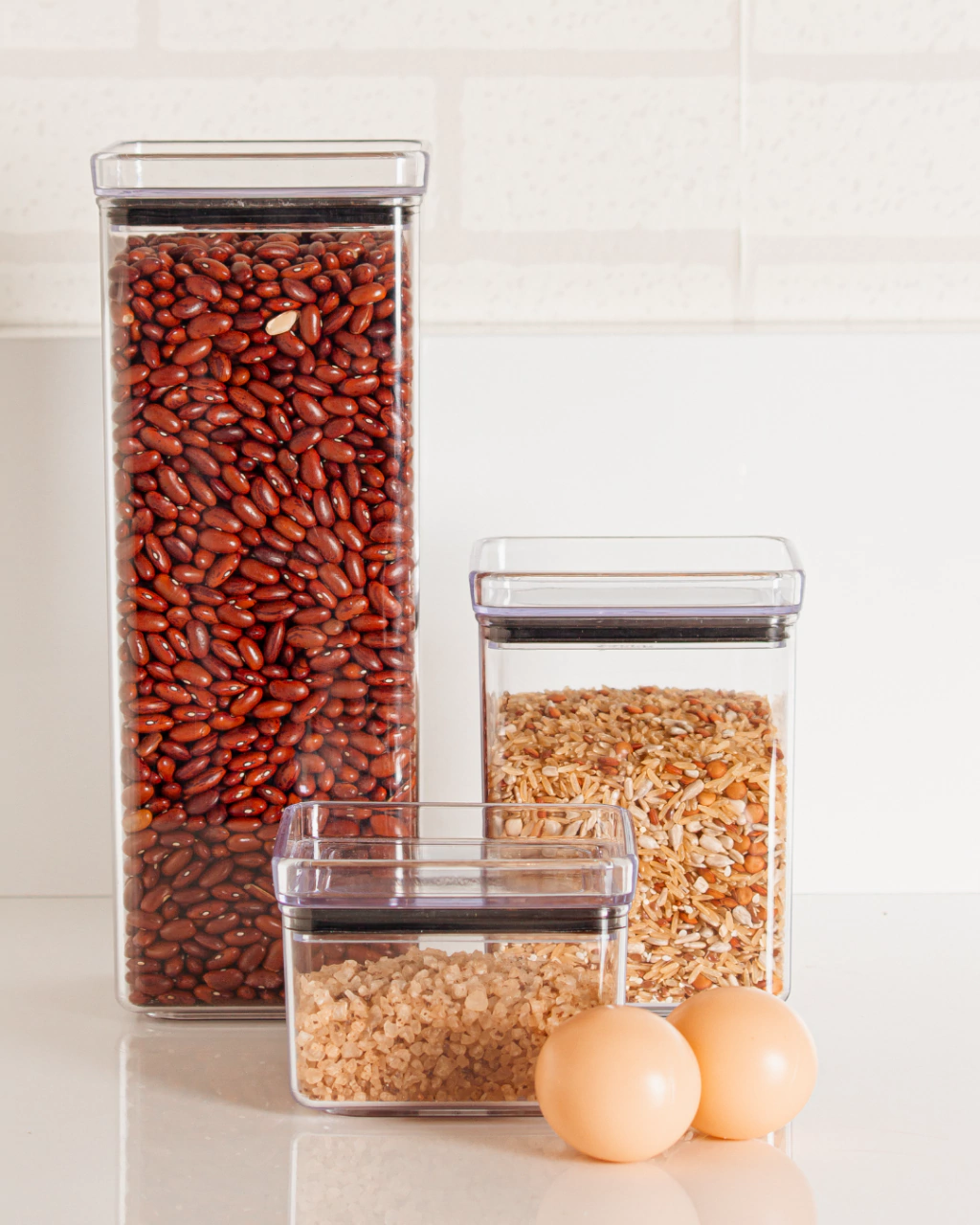 Possui sistema de fechamento hermético que preserva seu alimentos por muito mais tempo. Produzido em plástico acrílico incolor, facilitando a visualização do seu conteúdo interno. São potes empilháveis possibilitando o preenchimento do seu armário, ganhando espaço.